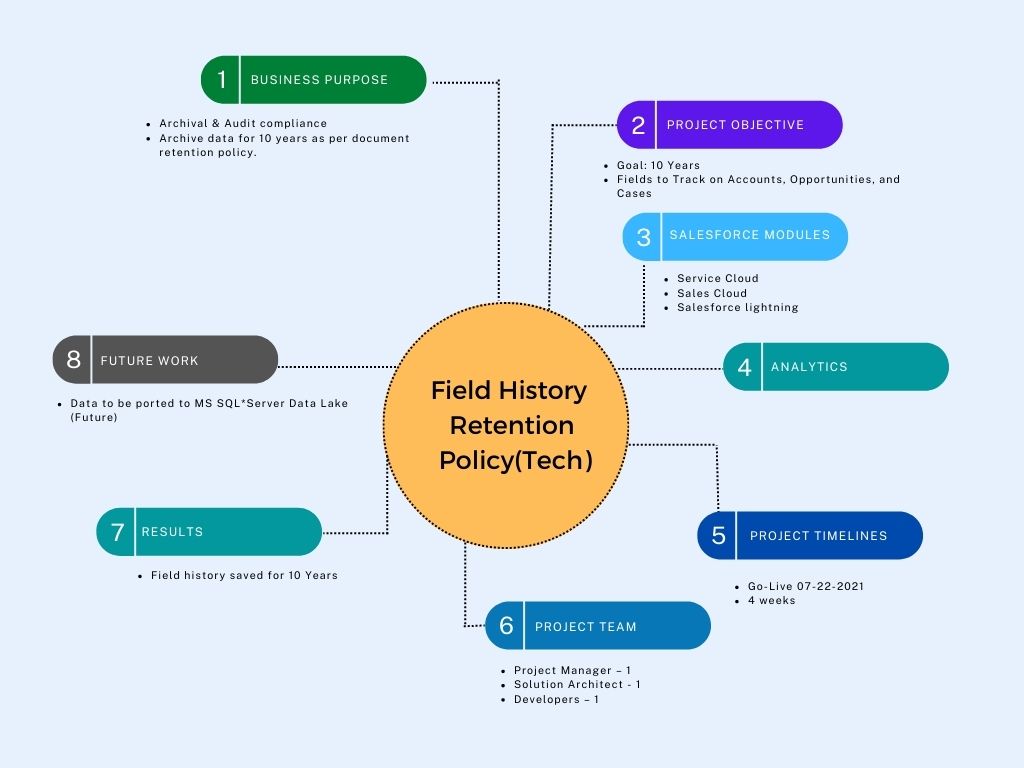 - Default Field history data is retained for up to 18 months, but business need is 10 years of field change history data retention
