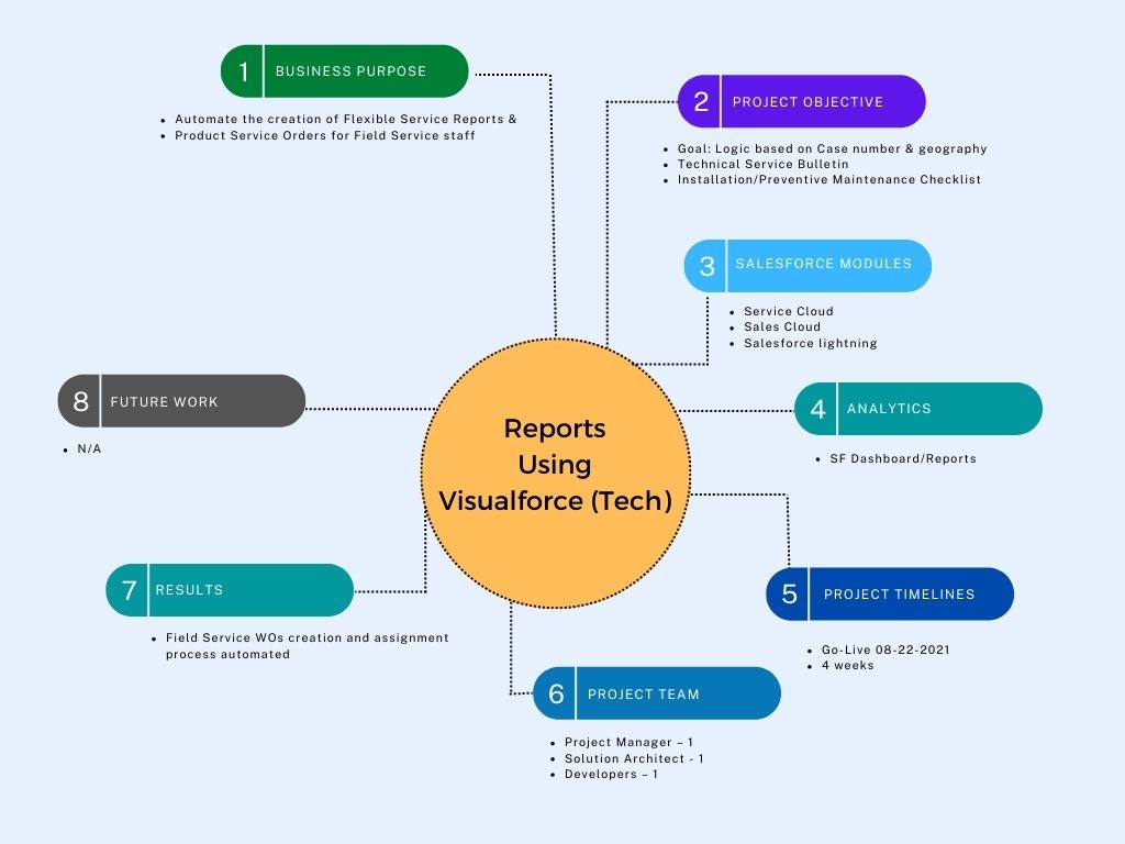 - Dynamically generate maint/install WO reports, based on case number for Field Service technicians.